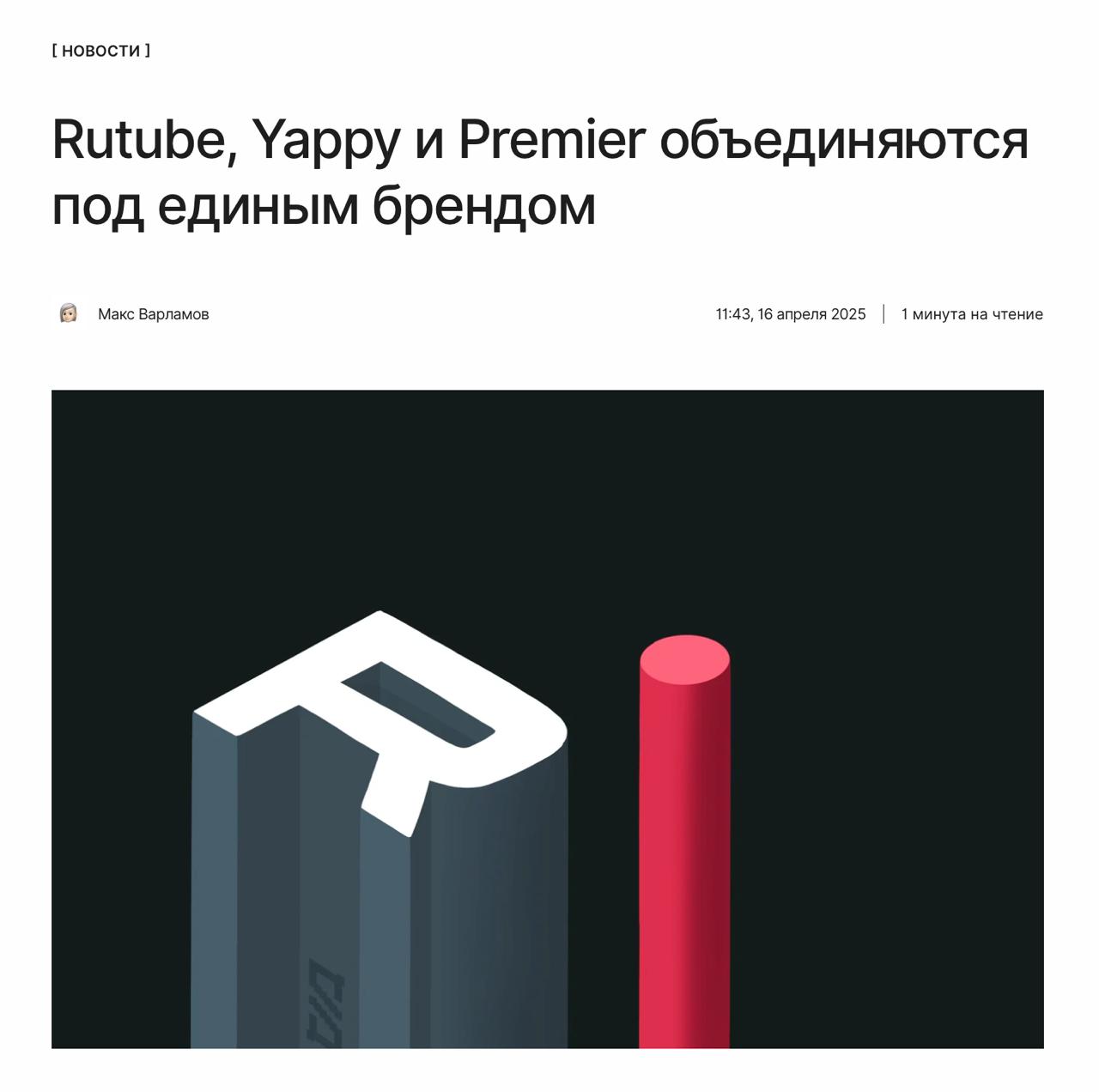 Rutube ΠΎΠ±ΡΠ΅Π΄ΠΈΠ½ΡΠ΅Ρ ΡΠ΅ΡΠ²ΠΈΡ ΠΊΠΎΡΠΎΡΠΊΠΈΡ Π²ΠΈΠ΄Π΅ΠΎ Yappy ΠΈ ΠΎΠ½Π»Π°ΠΉΠ½-ΠΊΠΈΠ½ΠΎΡΠ΅Π°ΡΡ Premier ΠΏΠΎΠ΄ ΠΎΠ΄Π½ΠΈΠΌ Π±ΡΠ΅Π½Π΄ΠΎΠΌ.