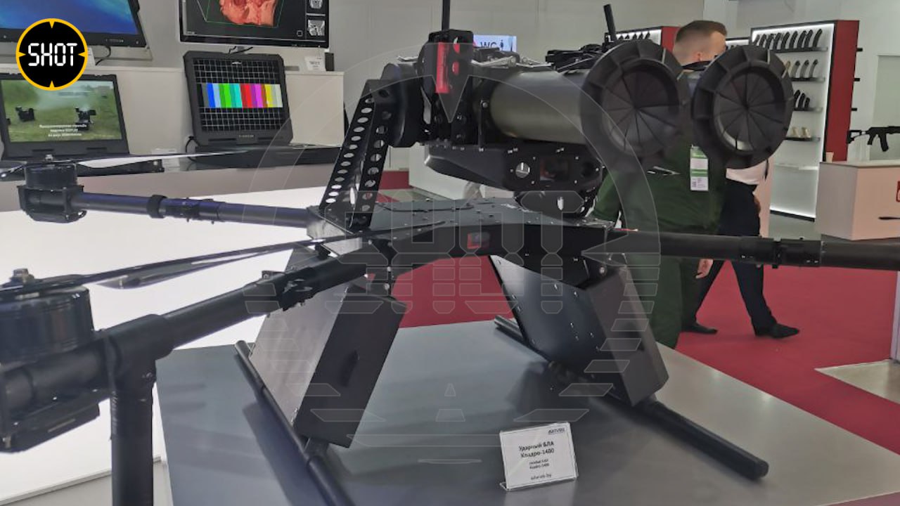 Ещё одна необычная новинка прибыла из Белоруссии — ударный FPV-дрон "Квадро 1400". Его особенность в том, что на его корпусе установлен ПТРК "Корнет". Такая разработка позволит уничтожать танки противника прямо с коптера.
