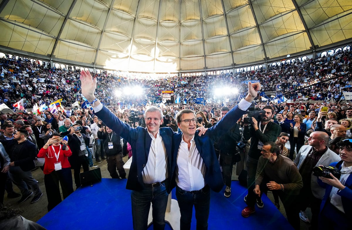 Durante su alocución, el expresidente del Gobierno Mariano Rajoy ha recordado el simbolismo de la plaza de toros de Pontevedra, donde los populares han celebrado actos electorales en repetidas ocasiones. La última, en la campaña de las elecciones generales de julio pasado. También en 2009, cuando Feijóo fue candidato por primera vez a la Xunta y Rajoy era entonces el jefe de la oposición durante el primer Gobierno del socialista José Luis Rodríguez Zapatero, contra quien había perdido los comicios de 2004. “Ganamos las elecciones y eso cambió muchas las cosas, para Feijóo, para mí y para España”, ha rememorado Rajoy sobre la posterior victoria de Feijóo, que supuso un acicate para el hoy expresidente del Gobierno. Una coyuntura similar a la que ahora enfrenta el líder del PP.