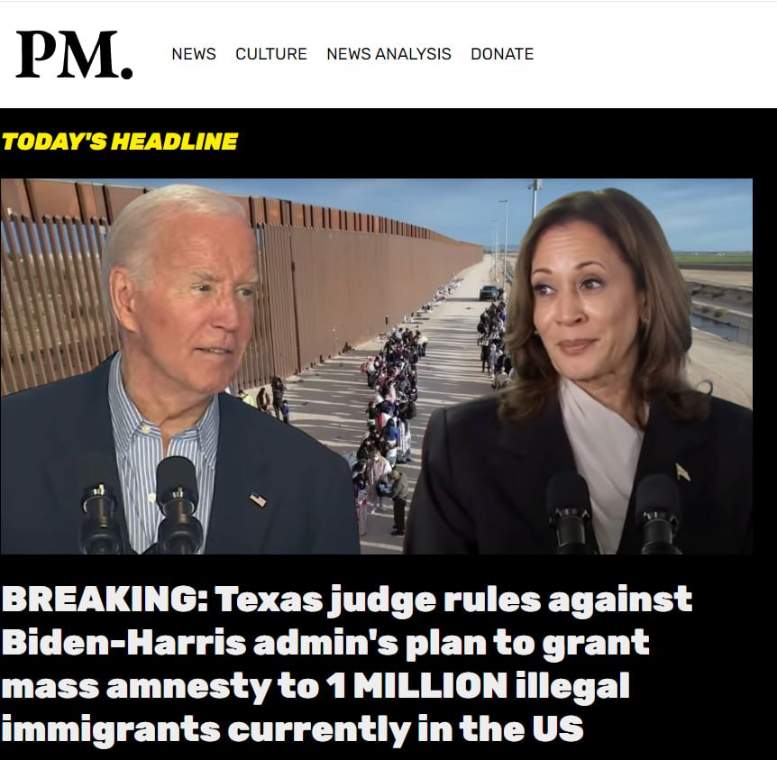 PM: суд в Техасе отклонил план администрации Байдена-Харрис по массовой амнистии миллиона нелегальных мигрантов, находящихся в США.