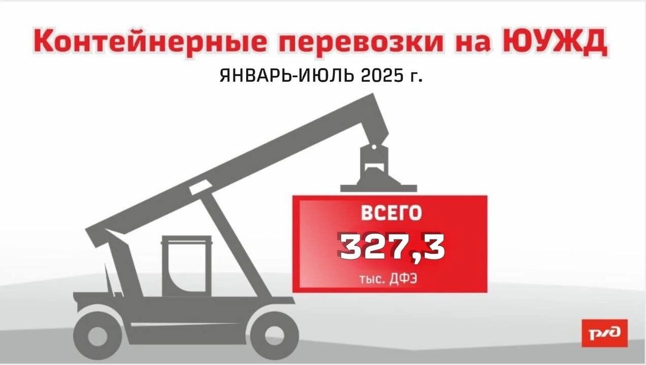 По данным железнодорожников, всего по ЮУЖД перевезли 327,3 тысячи контейнеров двадцатифутового эквивалента. Если по-простому — шестиметровых.