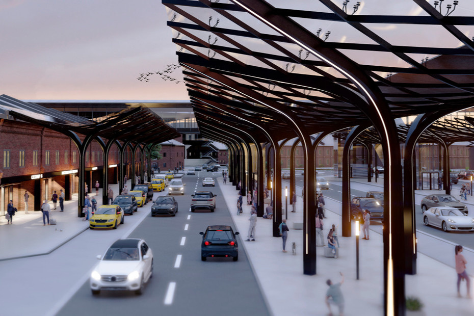 Восточная сторона предназначена для личных автомобилей и такси (и для прибытия, и для отправления). Внутри полосы отвода железной дороги территория освобождается от части путей. Ее займут автоперроны и пешеходные заходы на вокзал. На южной стороне Военной улицы расположится стоянка-накопитель для электронной очереди ожидания такси и личных авто. По предложению авторов таксисты, которые приезжают за пассажиром, смогут принимать заказы, только находясь на этой стоянке.