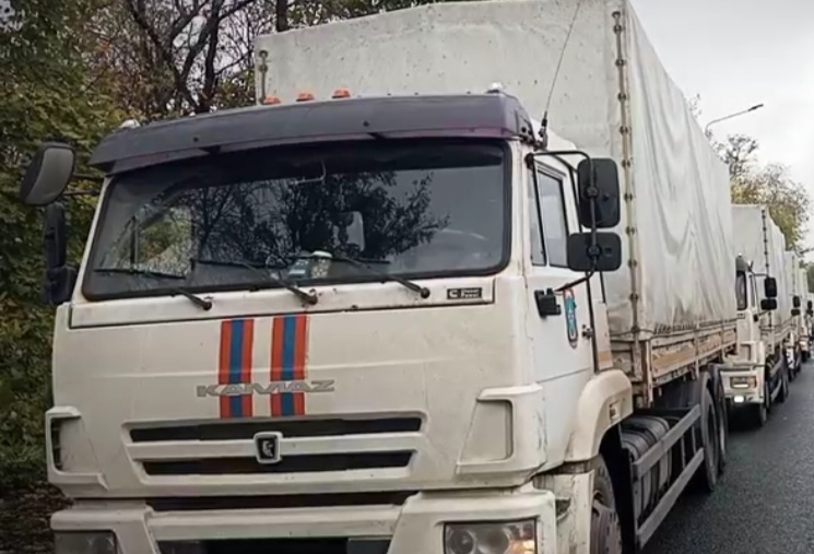 Сегодня десятью грузовиками МЧС России было доставлено 95 тонн продуктов питания жителям Донбасса. Отсюда автотранспорт с грузом отправился в Рубежное, Лисичанск и пгт. Епифановка Кременского МО.