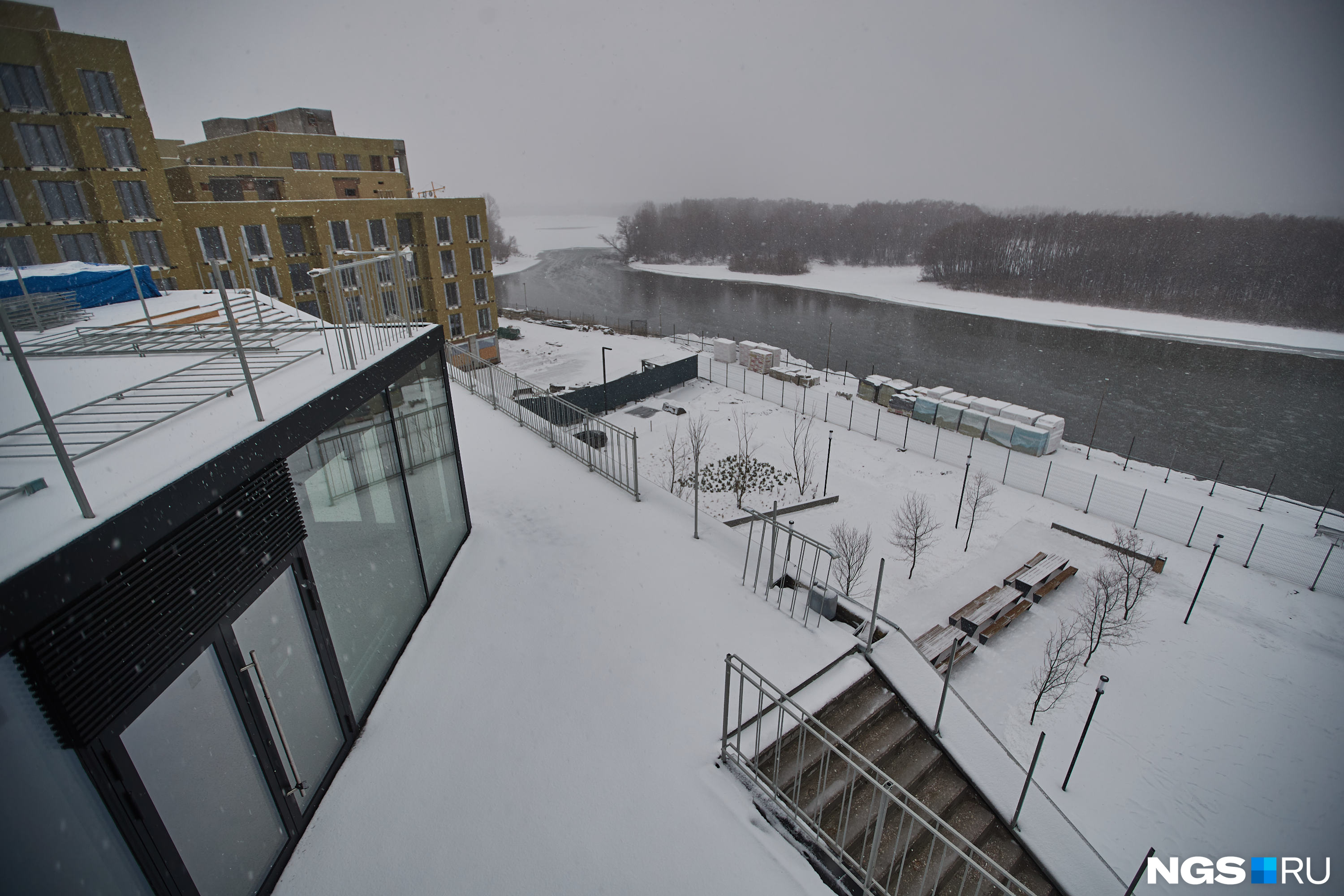 Часть террас доступна с лестниц, и с них открывается вид на реку и микрорайон, часть — принадлежат собственникам офисов, некоторые отделены. Общедоступные террасы будет обслуживать УК «Брусника. Управление домами», частные — сами собственники, которые получат от застройщика специальные инструкции. Михаил Бельский отметил, что строгого деления на частные и общественные террасы среди доступных с наружных лестниц всё же нет, и владельцы помещений, по его словам, были к этому готовы.