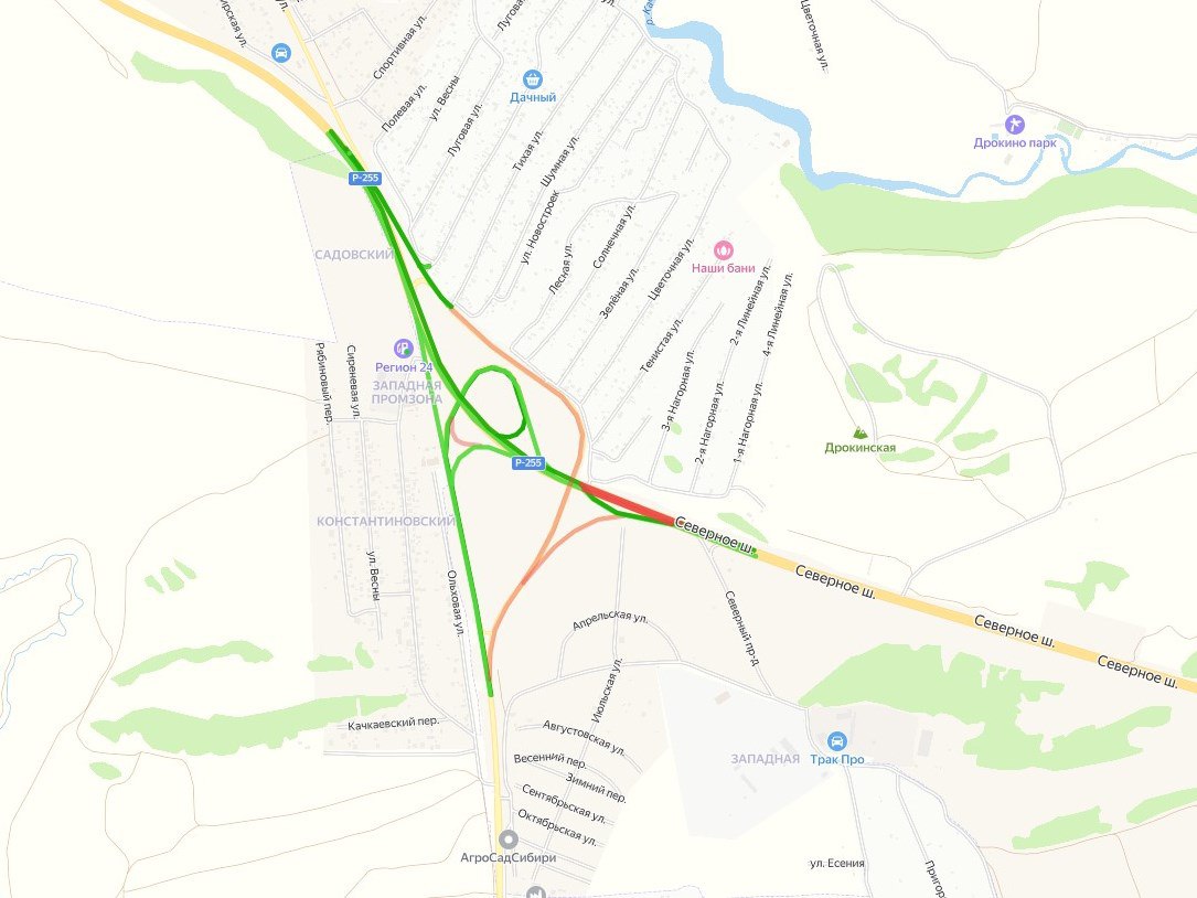 Проехать отрезок федеральной дороги Р-255 «Сибирь» в районе сопряжения с Северным шоссе можно будет по одной полосе в каждом направлении.