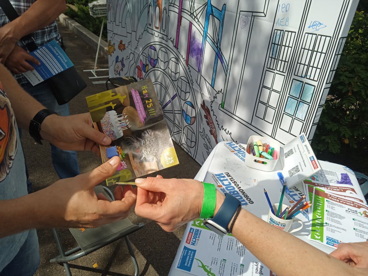 Локация «Городских новостей» уже начала работу. Красноярцы отвечают на вопросы о животных, а за правильные ответы получают «рои». В конце праздника гости смогут обменять их на сувениры от зоопарка. Также посетители раскрашивают гигантскую раскраску с достопримечательностями Красноярска. Кстати, первыми участие в викторине приняли туристы из Братска.