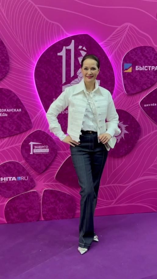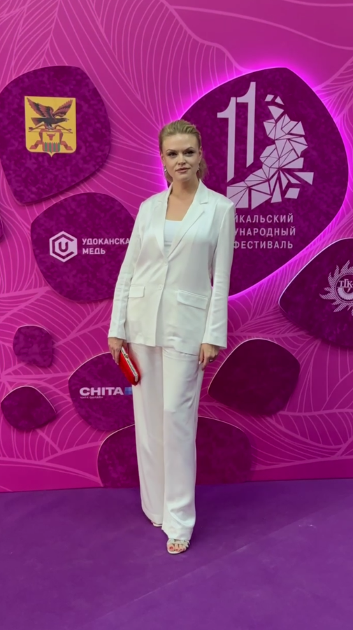 Ольга Кабо днем успела провести в Чите творческую встречу с поклонниками, а уже вечером прошлась по ковровой дорожке в расслабленном образе: джинсах и стильном жакете, стилизованном как гусарский доломан.
