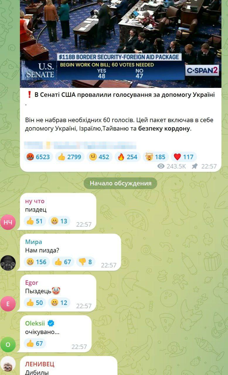 Хохлы обсуждают проваленный в Сенате США законопроект о границе и помощи Украине/Израилю.