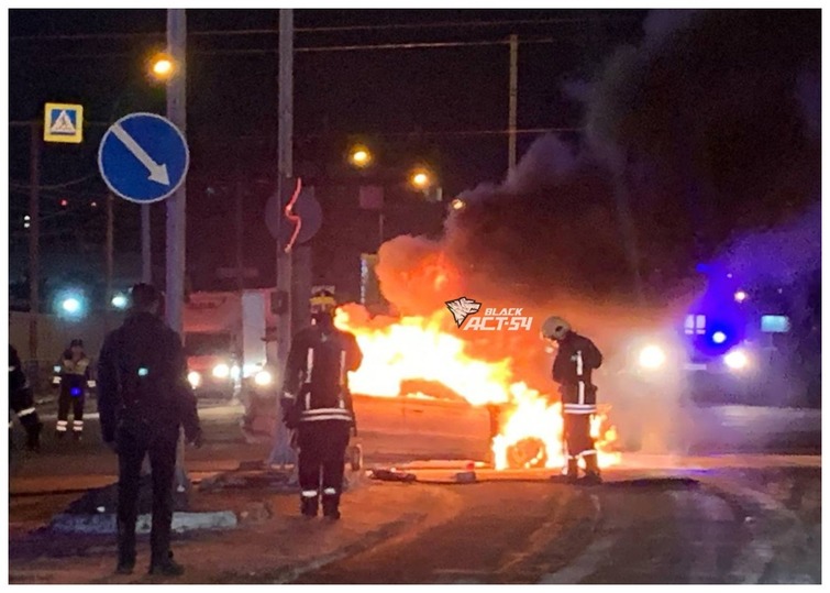 Седан сгорел дотла на перекрестке Ватутина и Немировича-Данченко в Новосибирске