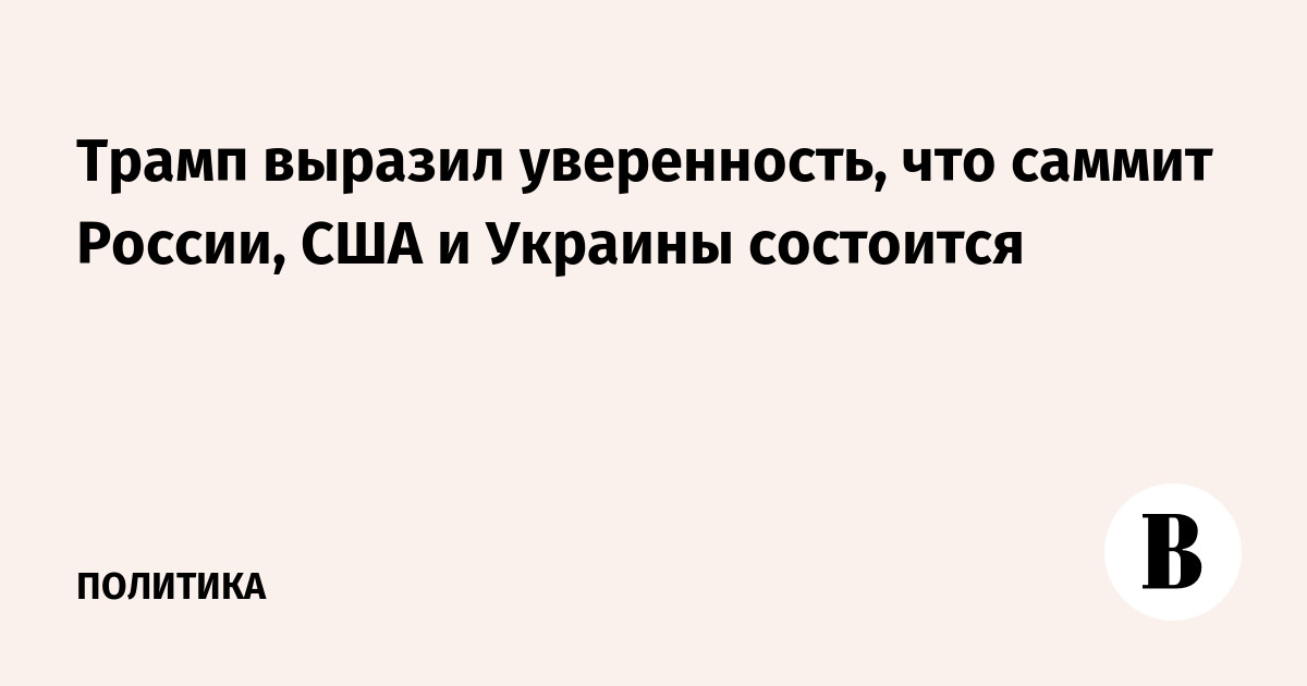 Президент США Дональд Трамп выразил уверенность, что трехсторонний саммит с участием Москвы, Вашингтона и Киева состоится. Об этом он заявил в интервью The Daily Caller.