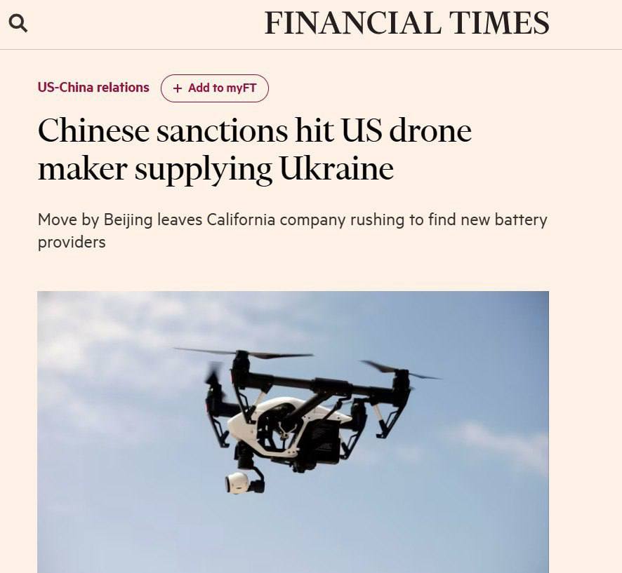 Америка ввела санкции против китайских компаний, Китай ответил и вот уже дроны из США, которые составлялись Киеву, могут остаться без запчастей.