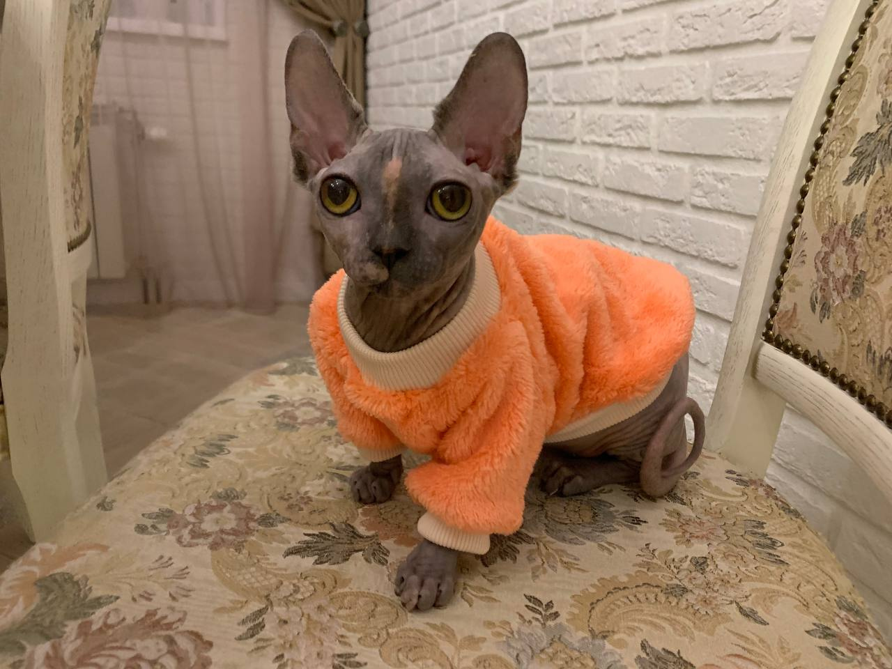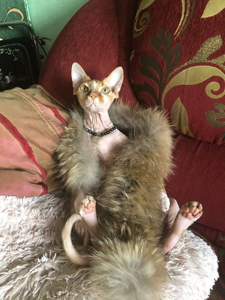 А еще прелестный сфинкс — настоящая фешн-икона. Носит кофточки и наряжается в богемные меха. И, кстати, Ромэс дружит с собакой породы шпиц, и не прочь поспать с ней в обнимку, ведь она — ходячий комок шерсти, говорит его хозяйка.