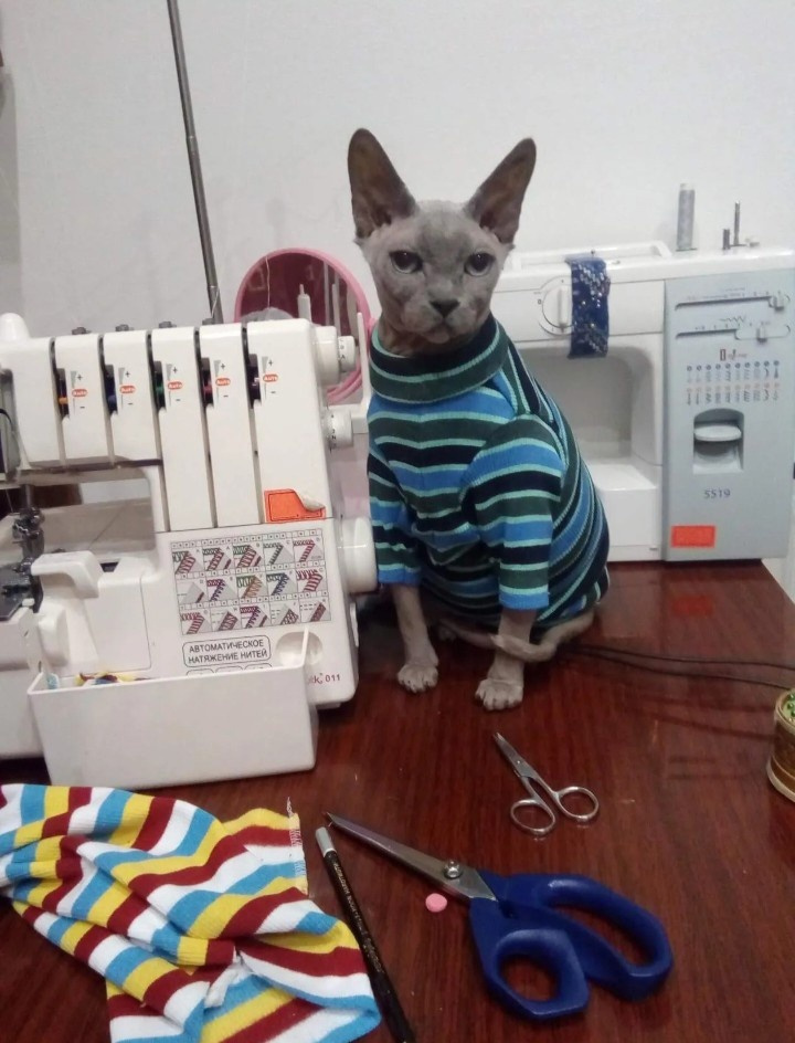 Несмотря на почти полное отсутствие шерсти, сибирские морозы сфинксам явно не помеха. С такими-то нарядами.