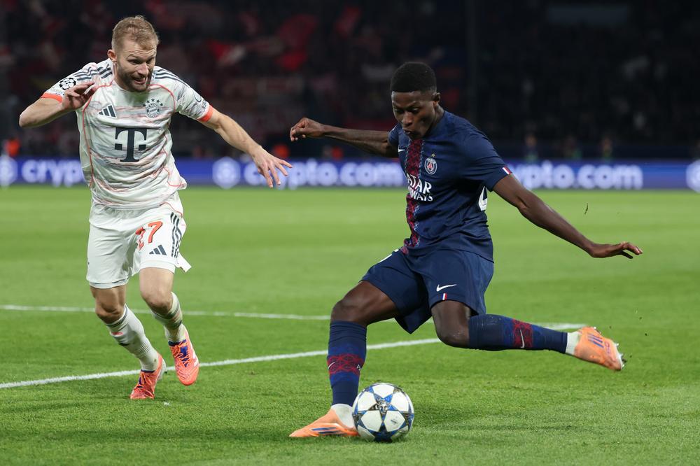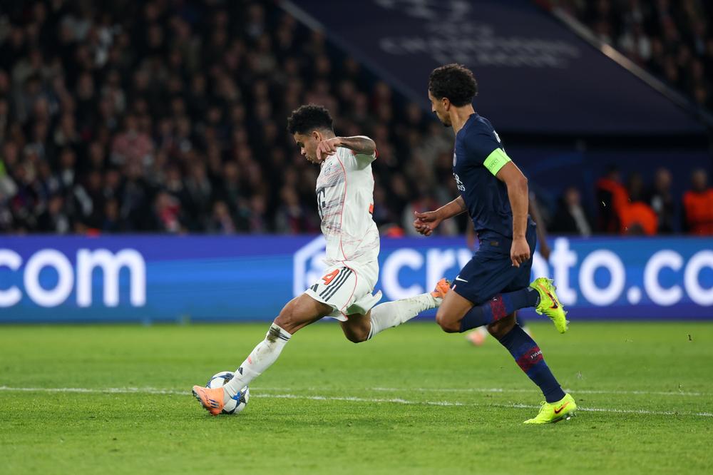 Poussés par un Parc en fusion, les Rouge et Bleu démarraient fort, imprimant une grosse pression sur chaque ballon, chaque contact, chaque duel. Pas assez pour se créer des occasions. Ni éviter de se faire punir en contre. Relance de Pacho dans l’axe, Nuno Mendes tout mou sur le contrôle et c’est parti à 1000 à l’heure côté bavarois. Olise était contrarié par Chevalier, mais Diaz avait suivi (0-1, 5e). Coup de froid. Sans un retour héroïque de Mendes, Laimer était parti pour faire le break (7e).