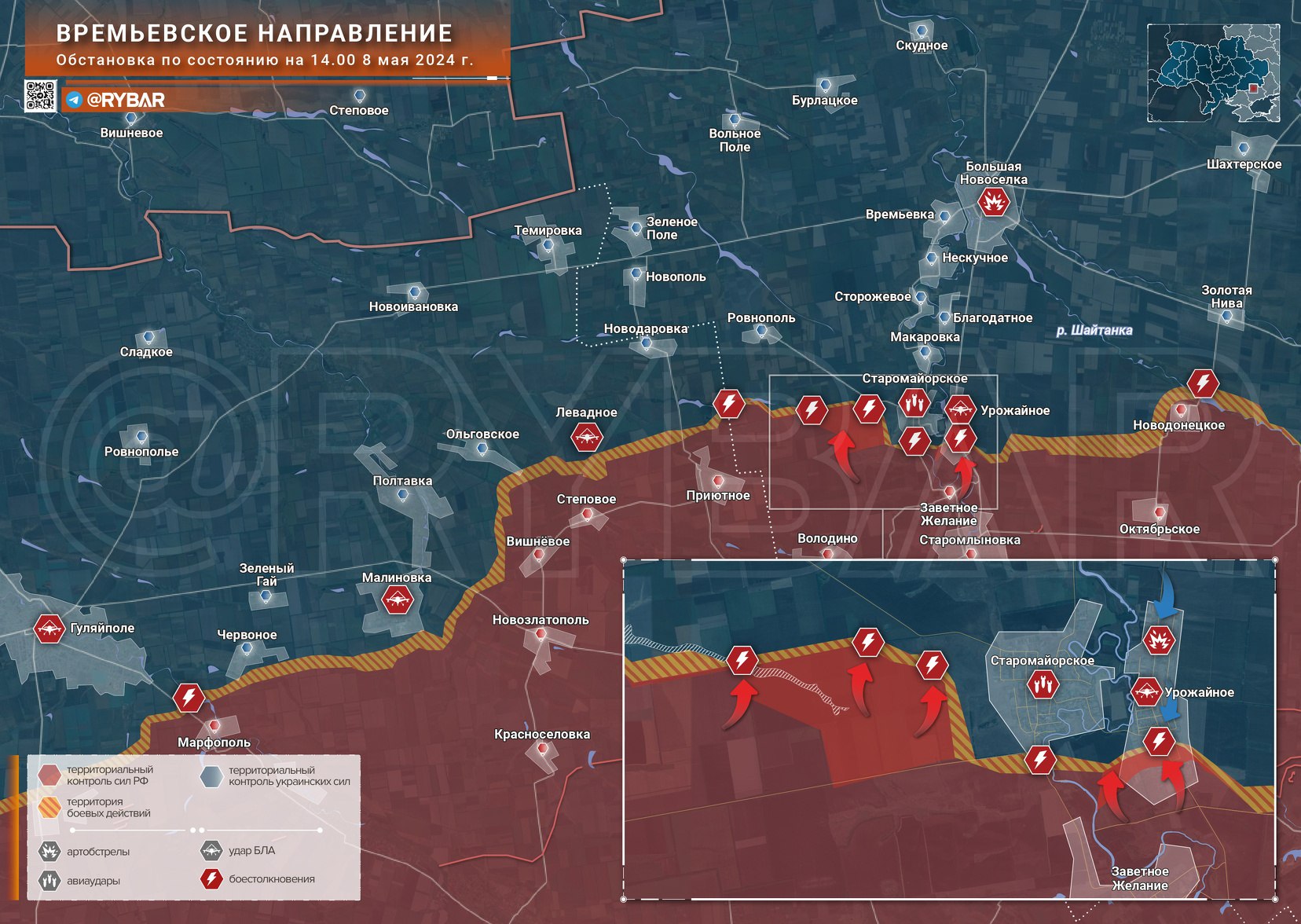 После успешного занятия территории сельскохозяйственного предприятия на юге Урожайного российские войска продолжают вести наступление на участке Урожайное — Старомайорское.