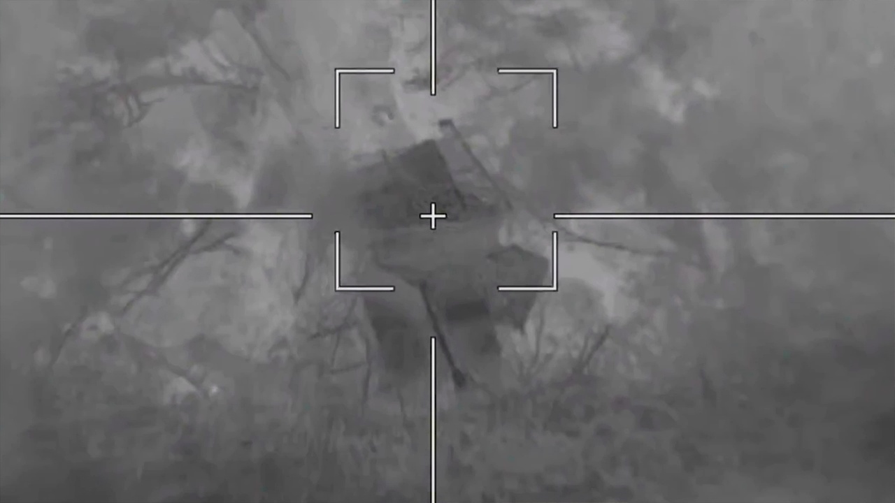 Оборонное ведомство показало последствия точного попадания дрона-камикадзе. На кадрах объективного контроля видно, как «Ланцет» бьет по цели, на месте удара происходит детонация.