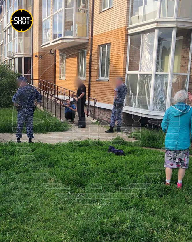 Задержать мерзавца помогли соседи: они гонялись за ним по двору и, когда тот выбился из сил, заломали его (на видео) и повалили (фото 2). Позже подтянулась Росгвардия (фото 3) и увезла нападавшего в отдел. Там он заявил, что напал с целью грабежа. При этом, у Светланы не было с собой сумки, только телефон в руках, который он не тронул.