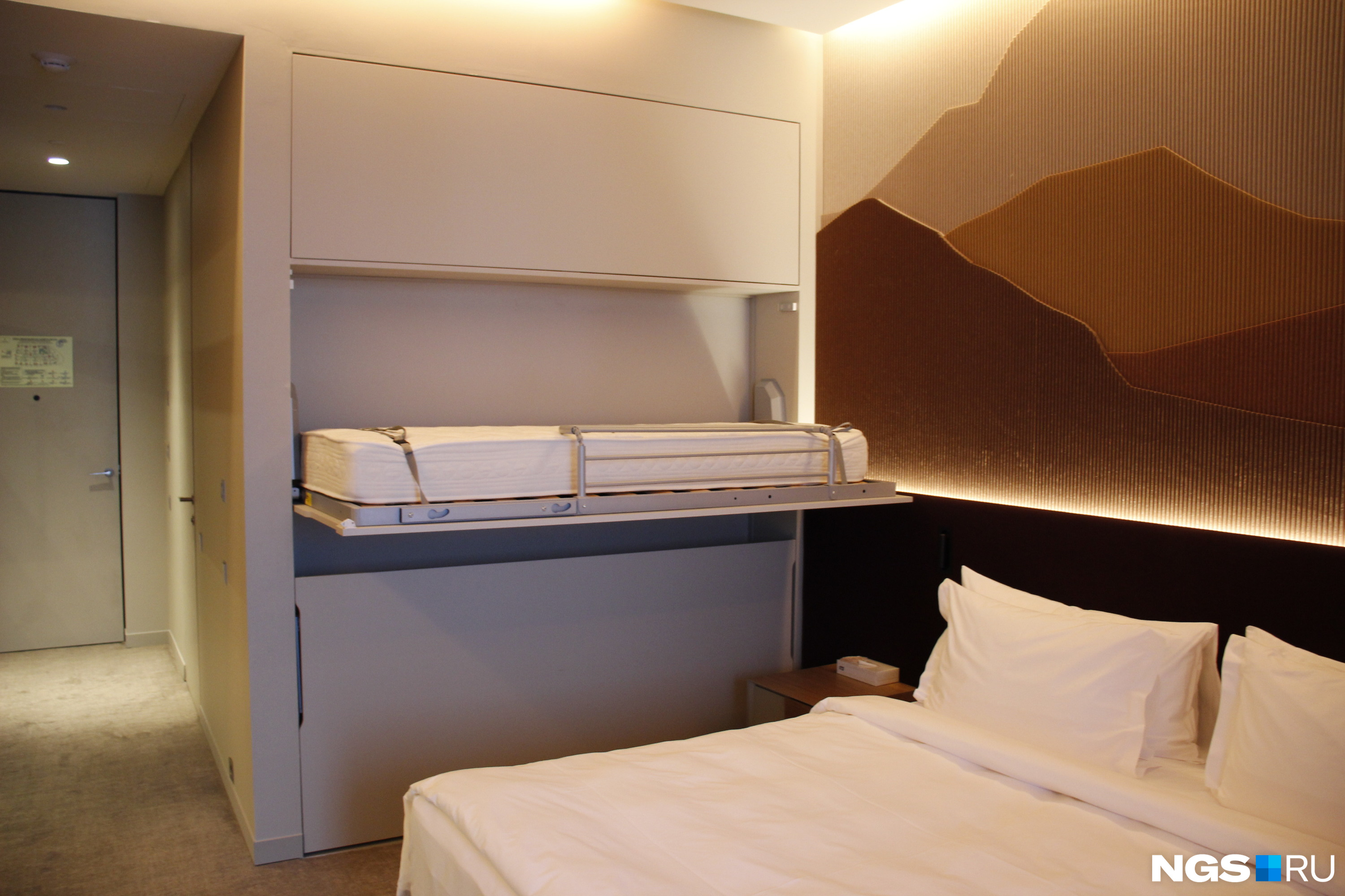 Среди необычных опций можно отметить наличие в номерах типа «Делюкс Супериор » двух дополнительных откидных кроватей для детей. В откинутом виде они добавляют номеру атмосферы спального вагона, но в гостинице говорят, что этот вариант пользуется спросом.