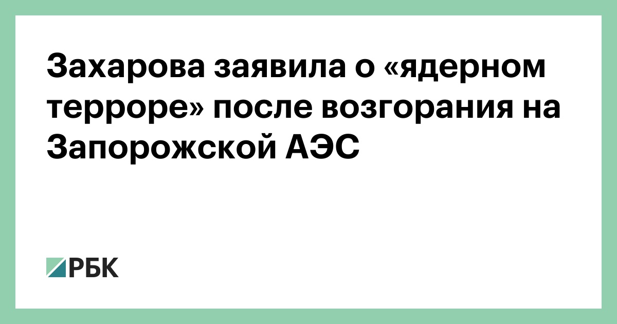 Официальный представитель МИДа Мария Захарова обвинила власти Украины в «ядерном терроре на континенте» после сообщений о возгорании на Запорожской атомной электростанции из-за атаки на Энергодар.