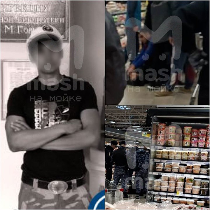 Подозреваемый в резне в "Окее" — 44-летний Юрий А. На фото задержанный уже лежит лицом в пол в отделе мясных деликатесов.
