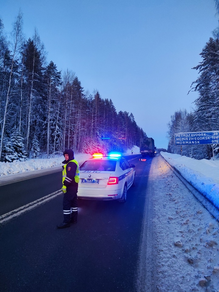 Обоих мужчин пересадили в патрульный автомобиль отогреваться, автоинспекторы регулировали поток движения на федеральной трассе. Также полицейские вызвали помощь для эвакуации грузовика, а для пассажира подыскали попутку до Петрозаводска.
