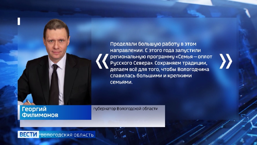 Губернатор Вологодской области Георгий Филимонов получил благодарственное письмо от Русской Православной церкви. Награду «За поддержку инициатив Русской Православной Церкви, активную позицию в деле защиты жизни ребёнка до рождения, силу духа и гражданское мужество в укреплении традиционных семейных ценностей» главе региона вручили на 33-х Международных Рождественских образовательных чтениях. Отметим, крупный церковно-общественный форум с названием «Семья и мир: во имя жизни на земле» посвящен вопросам образования, культуры, социального служения, духовно-нравственного просвещения и патриотического воспитания. Подробности в материале ГТРК «Вологда».
