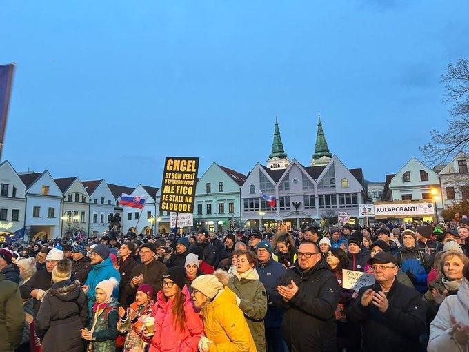 ⚡️ В столице Словакии набирает обороты протестное движение - около 40 тысяч человек вышли на Площадь свободы в Братиславе с требованием отставки премьер-министра Роберта Фицо.