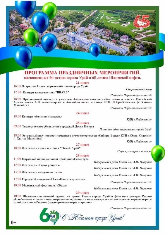 Одному из опорных городов Лукойла — Ураю — 25 июня исполнится 60 лет. Празднование Дня города отметят в субботу, 28 июня, с еще одной знаковой датой — 65-летием добычи Шаимской нефти.