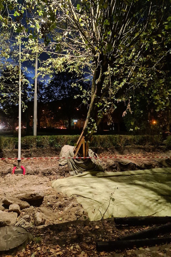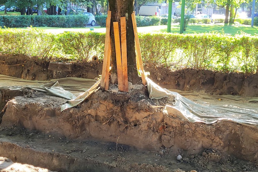 «Думаю, что дерево начало падать вчера, — рассказал очевидец. — Я там ходил последние несколько дней каждый день, и все стояло. Это на раскопанном уже несколько месяцев участке между улицами Пацаева и Карла Маркса».
