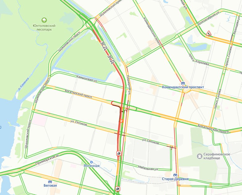 Трёхкилометровая пробка растянулась на севере ЗСД из-за аварии