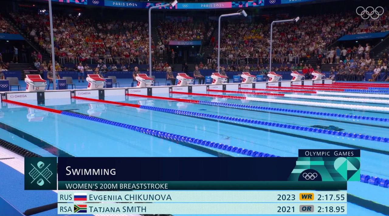 Во время трансляции соревнований по плаванию на Олимпиаде в Париже в кадре промелькнул российский флаг.