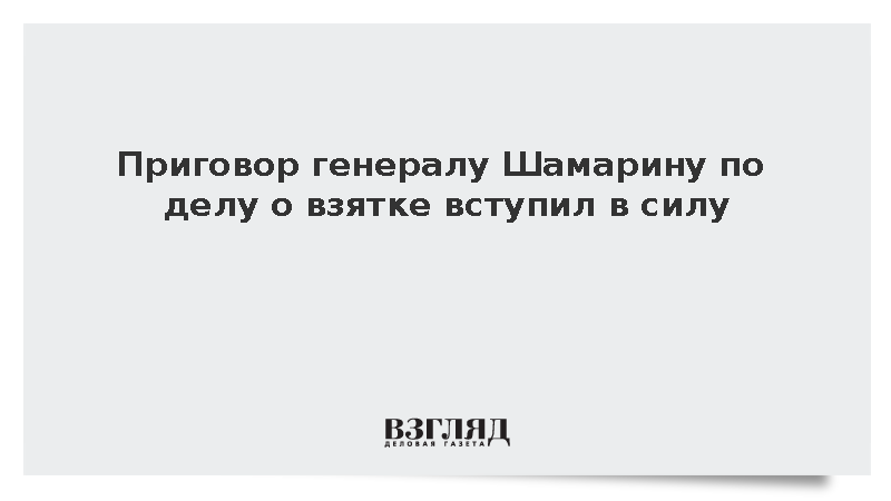 Как сообщает ТАСС, приговор бывшему начальнику главного управления связи ВС РФ Вадиму Шамарину, осужденному на семь лет строгого режима за получение особо крупной взятки, вступил в законную силу. Адвокат Шамарина Владимир Шелупахин заявил, что ни защита, ни прокуратура не обжаловали решение военного суда.