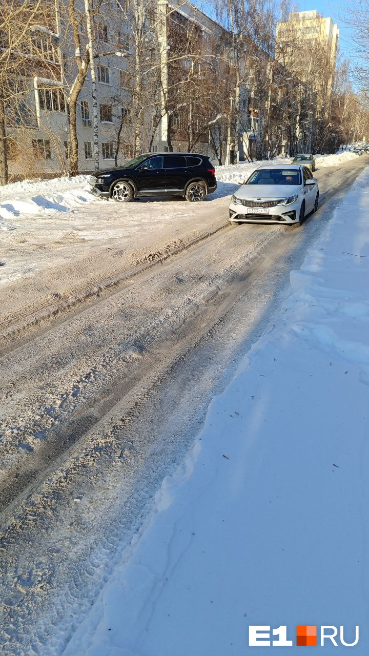 Уверен, на бумагах у них всё почищено. Меня выбросило из колеи, и я чуть не въехал в стоящие на обочине машины. А сейчас колея такая, что машины не могут из нее выехать, чтобы повернуть к себе во двор. В ДЭУ просто бросают трубку, — рассказал E1.RU местный житель Тимофей.