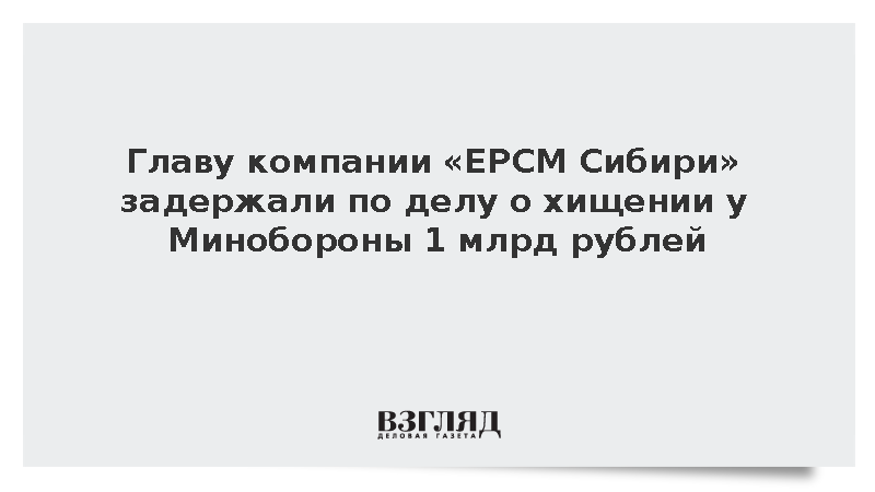 МВД возбудило дело о хищении почти 1 млрд рублей у Минобороны при строительстве центра управления связи, в рамках него задержан руководитель ООО «ЕРСМ Сибири» Роман Безруков, сообщили в правоохранительных органах.