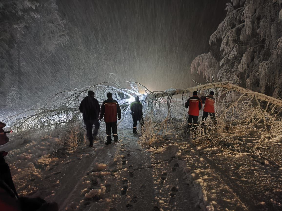 Кроме того, налипший мокрый снег и упавшие деревья оборвали провода, в результате чего в нескольких городах Свердловской области произошло отключение электроэнергии.