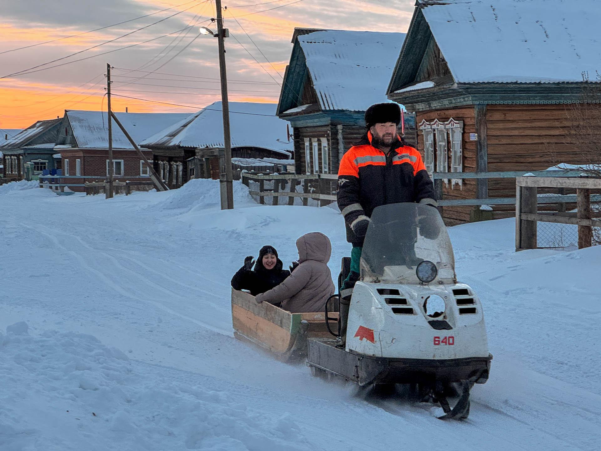 На повороте в Овсянникова нас встречает Абдула с красными от ветра щеками и заледеневшей бородой. Из села 40 километров он проехал на буране — единственном транспорте, который может преодолеть бугристую дорогу.