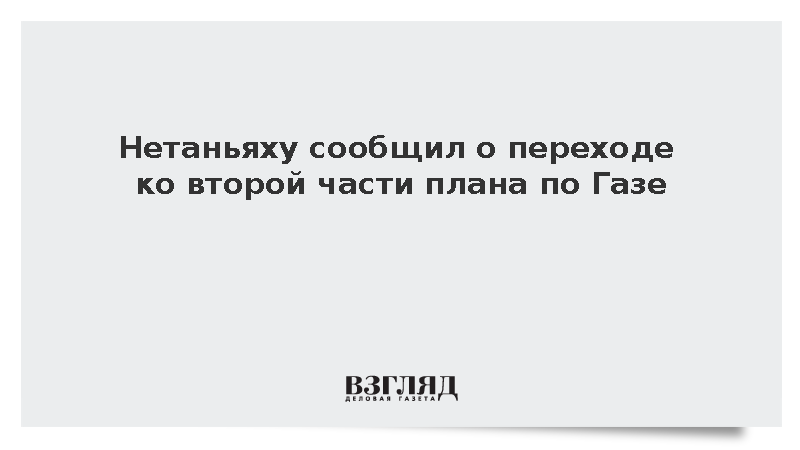 Нетаньяху сообщил о скором переходе ко второй стадии мирного плана, предложенного президентом США Дональдом Трампом, передает РИА «Новости». Первая фаза, по его словам, уже практически завершена. Нетаньяху добавил, что следующим этапом будет разоружение движения ХАМАС и полная демилитаризация сектора Газа.