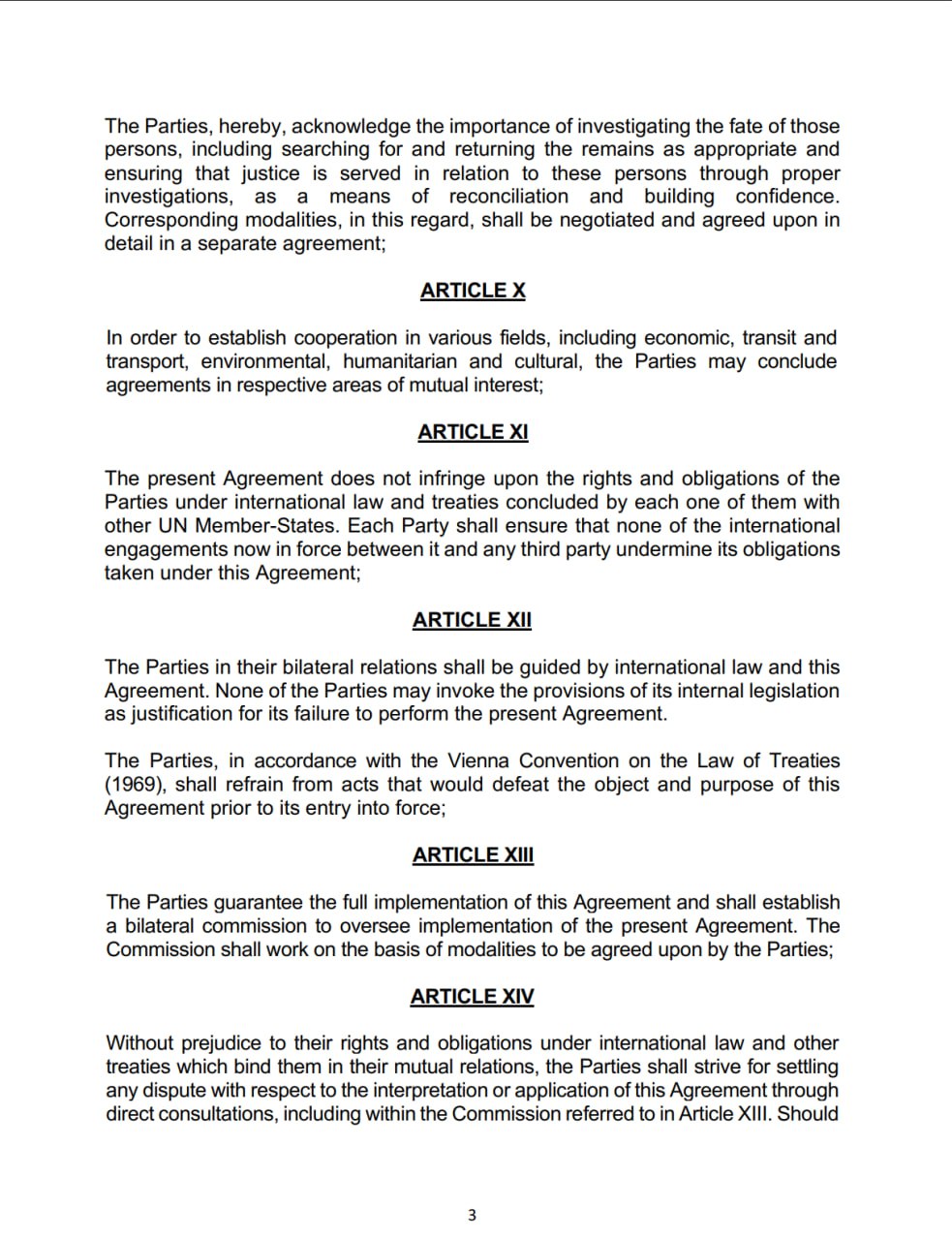 Всего документ состоит из 17 пунктов. В статье 7 указано, что стороны не будут размещать вдоль своей общей границы вооружённые силы третьих сторон.