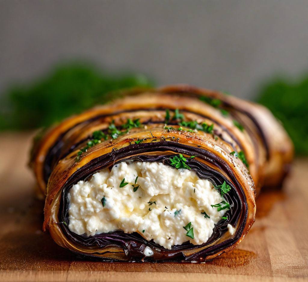 3. Баклажаны обжарить с двух сторон на сковороде и охладить. На каждый ломтик баклажана выложить сырную смесь, свернуть в рулетики. При необходимости закрепить зубочисткой или шпажкой.