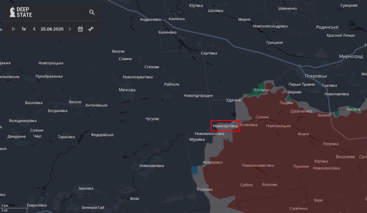 Российские войска закрепились в Новосергеевке на административной границе с Днепропетровской областью, заявляет Минобороны РФ. Параллельно украинские аналитики из Deep State классифицируют село как «серую зону», где ведутся активные боевые действия, но окончательный контроль россиян не закреплён. По их карте, продвижение российских сил продолжается не только у Днепропетровской границы, но и в Шевченко и соседних населённых пунктах.