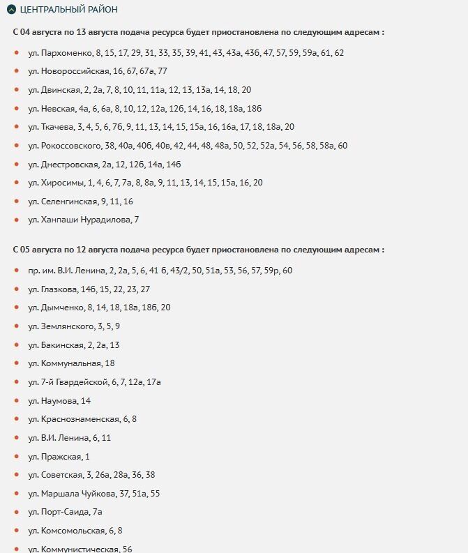 По ряду адресов отключения будут кратковременными — всего пару дней, а где-то продлятся две недели.
