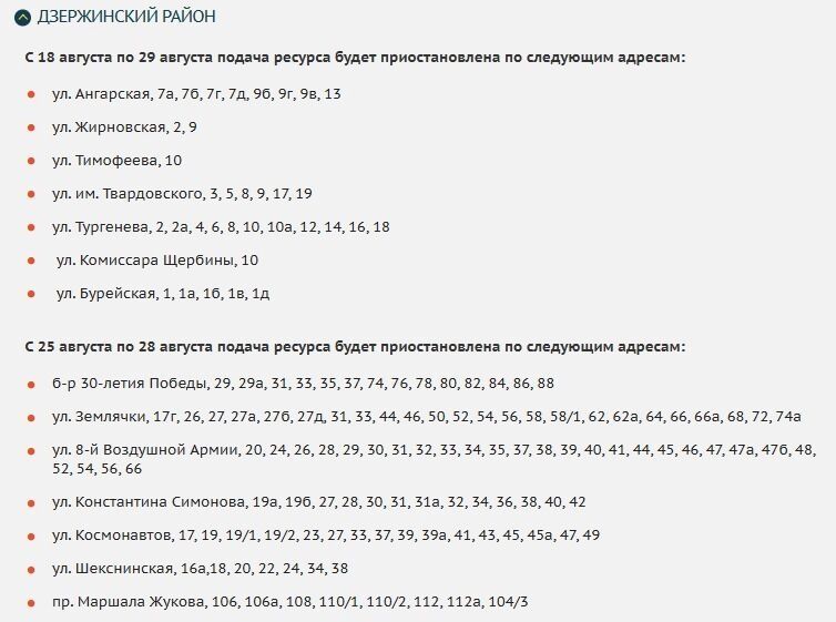 В Дзержинском районе с 18 по 29 и с 25 по 28 августа не повезет улицам Ангарская, Жирновская, Тургенева, Бурейская, Землячки и не только.