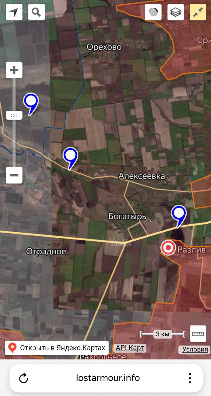 Синими маркерами - огневой контроль по хохлу на Новопавловском направлении