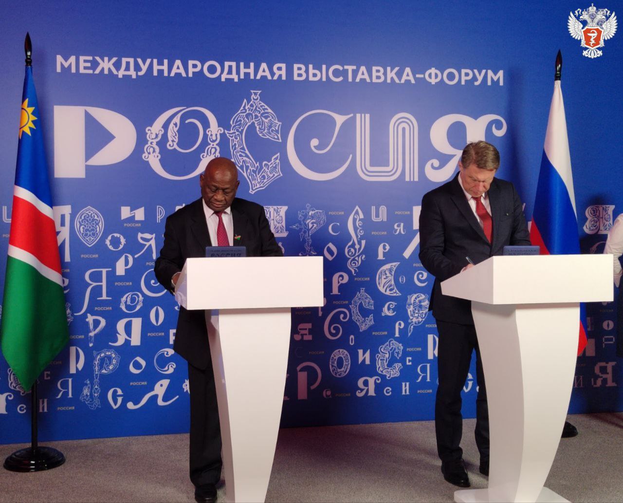 Подписание состоялось на Международной выставке-форуме «Россия» в рамках 10-го заседания Межправительственной Российско-Намибийской комиссии по торгово-экономическому сотрудничеству.