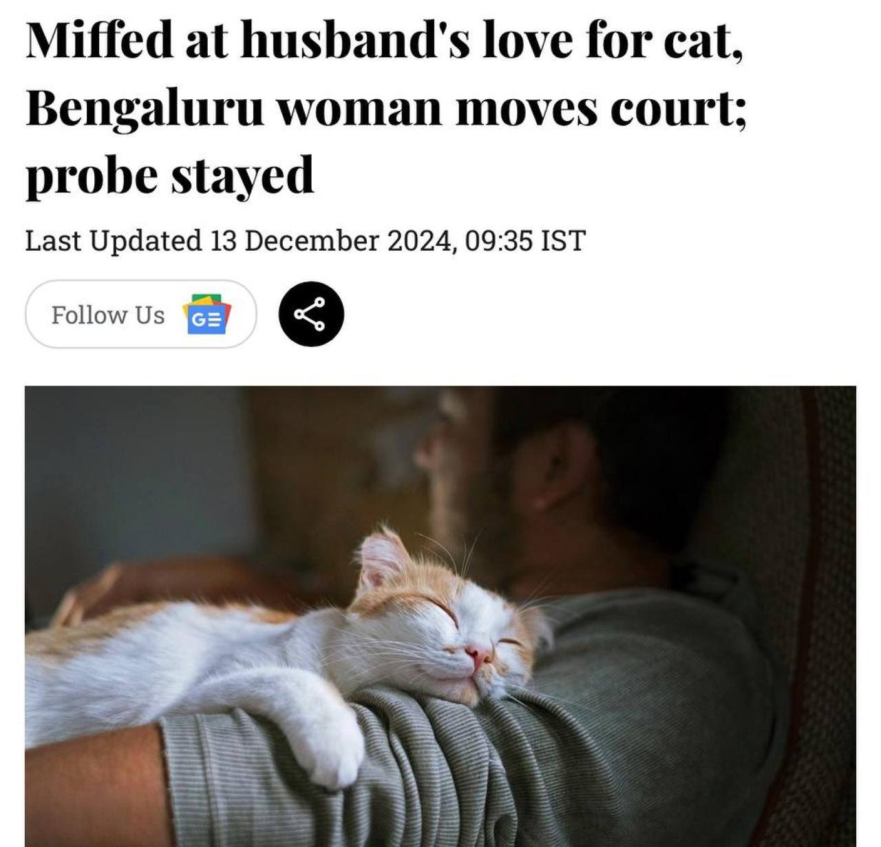В Индии женщина подала в суд на мужа, потому что он заботился о кошке больше, чем о ней.