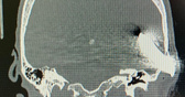 В больнице у мужчины диагностировали открытую тяжелую черепно-мозговую травму с наличием фрагмента металлического крюка 6х4 см в тканях головы. Инородное тело вошло в левую височную долю. Также наблюдались нарушения речи и движений. Нейрохирурги экстренно провели декомпрессивную трепанацию черепа с удалением инородного тела.