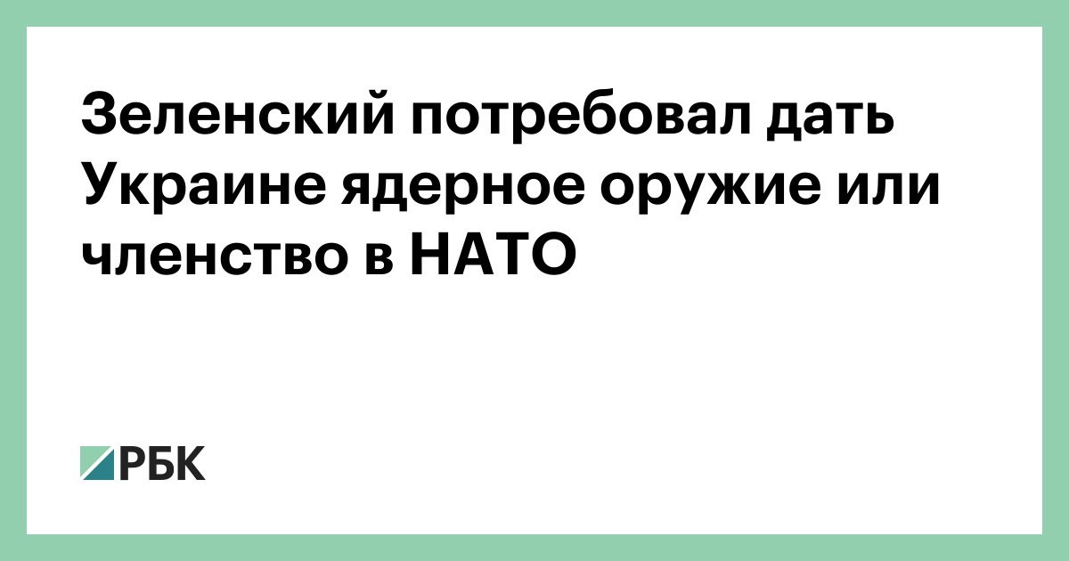 «Если эти процессы (вступление в НАТО. — РБК) продлятся годы, десятилетия, не из-за нас, а из-за партнеров, тогда у нас есть абсолютно справедливый вопрос: что будет нас защищать <...> на протяжении этого времени, какие пакеты помощи, какие вооружения? Нам дадут ядерное оружие? Тогда позвольте им дать нам ядерное оружие. Дадут ли нам ракеты в таком количестве, чтобы мы могли остановить Россию, в чем я сомневаюсь? Но это поможет», — сказал Зеленский.