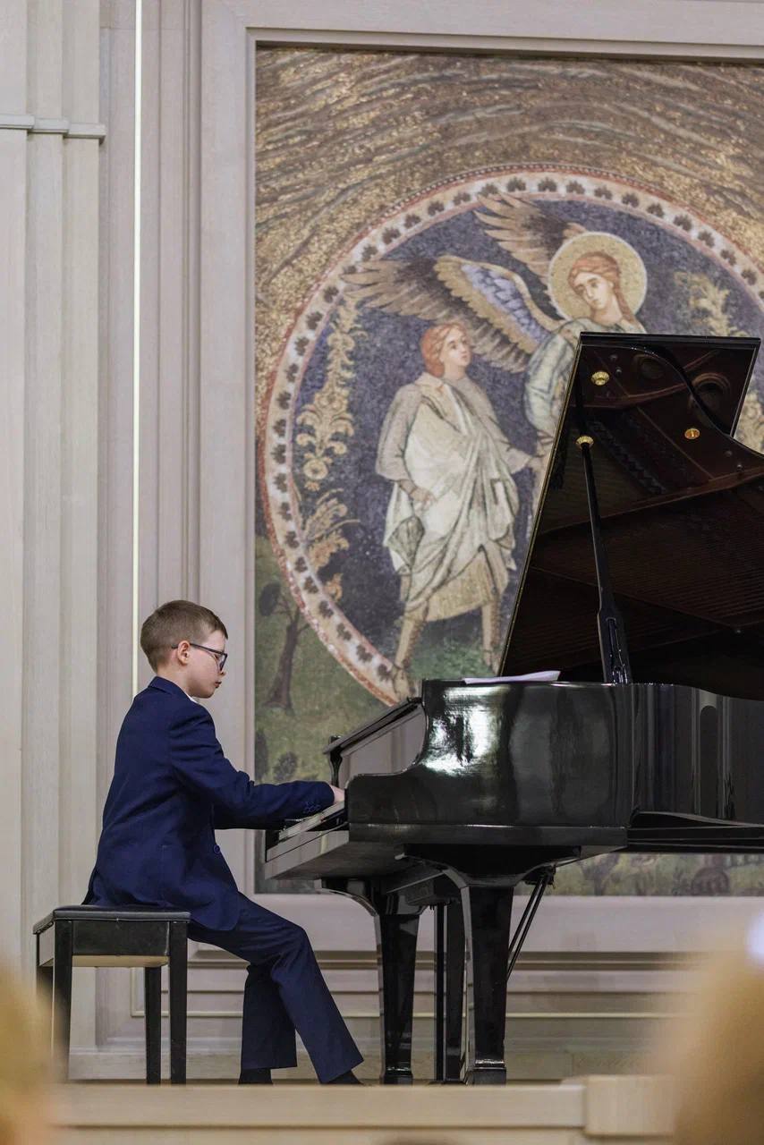 На сцене актового зала Сретенской академии юные музыканты получили замечательную возможность и порадовали слушателей игрой на легендарном рояле (на котором играла Александра Пахмутова), а также зрители услышали баян и скрипку.