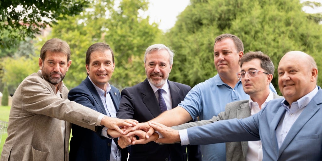 Azcón se ha hecho acompañar hoy del consejero de Agricultura, Ganadería y Alimentación, Javier Rincón, y el director general de Producción Agraria, Carlos Calvo. Los tres se han reunido con las organizaciones agrarias UAGA, ASAJA, ARAGA y UPA, además de Cooperativas Agroalimentarias de Aragón, para analizar la propuesta. Posteriormente, han firmado la declaración conjunta en la que se han recogido reivindicaciones.