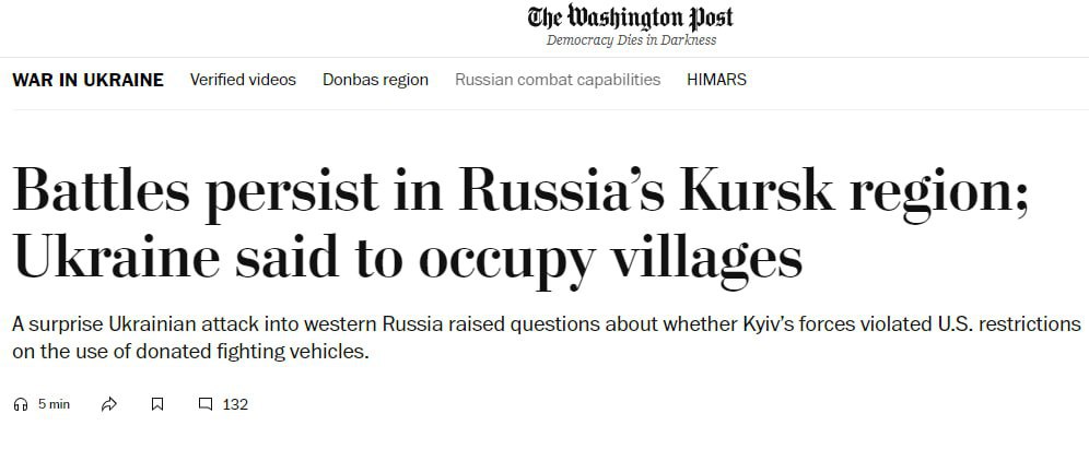 Целью Киева в Курской области может быть прекращение всех поставок газа из России в Европу Таким предположением поделились аналитики в интервью газете The Washington Post. На данный момент Украина так и не подверглась критике со стороны Вашингтона. «В конечном итоге решения о том, как Украина будет проводить свои военные операции, принимает сама Украина», – заявил представитель Госдепа США Мэттью Миллер. Ранее мы рассказывали, что из-за боёв в Курской области сильно снизились поставки газа в Словакию. Подписывайтесь на «Абзац»